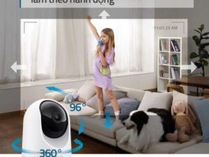 Eufy Indoor Cam 2K Pan & Tile với giá xoay 360 độ, giám sát căn nhà bạn một cách toàn diện. Không như các camera thông thường chỉ chết ở một góc quay duy nhất, Eufy Pan & Tile có thể điều chỉnh góc quan sát ngay từ trên điện thoại. Giá xoay vô cùng êm và nhịp nhàng không làm cho chất lượng video bị mờ hay rung lắc khi chuyển động. Pan & Tile cũng có thể điều chỉnh tốc độ quay cho phù hợp với tầm nhìn.