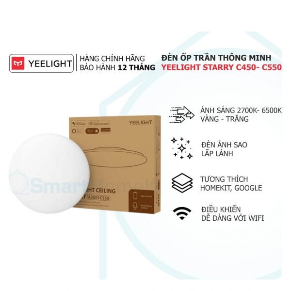 Đèn LED ốp trần thông minh 50W Yeelight A2101 sở hữu thiết kế hình sao đẹp mắt. Sau khi bật đèn sẽ cho bạn độ sáng đẹp như bầu trời đầy sao. Với 2 phiên bản gồm model A2101C450 có kích thước là ∅495 x 93mm. Sử dụng khu vực chiếu sáng trong khoảng từ 10 đến 15m² . Phiên bản model A2101C550 sở hữu kích thước lớn hơn ∅598 x 103mm. Cho khu vực chiếu sáng lớn hơn từ 15 đến 25m². Tùy vào nhu cầu sử dụng bạn có thể chọn kích thước phù hợp.