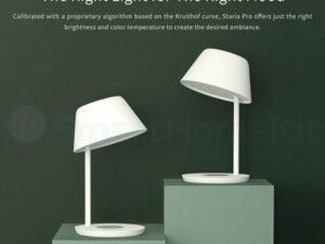 Phiên bản đèn ngủ mới nhất từ Yeelight – Staria Bedside Lamp Pro. Đèn ngủ kết nối Wifi 2,4GHz điều khiển bằng điện thoại và công tắc trên thân đèn. Kết hợp vào đó là chức năng sạc không dây dành cho các thiết bị điện thoại và AirPods. Yeelight Staria Bedside có thiết kế cổ điển, thích hợp cho khu vực đầu giường hoặc bàn học. Chụp đèn có màu trắng, bằng nhựa giúp ánh sáng được tỏa đều Có thể thay đổi góc chiếu. Chân đèn có đế cao su chống trơn trượt và trên đỉnh đèn có kèm một vòng sáng mới lạ.