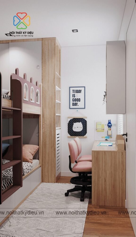 - Màu sắc tươi trẻ: Chiếc giường đã tạo nên một không gian tươi trẻ cho các bé.