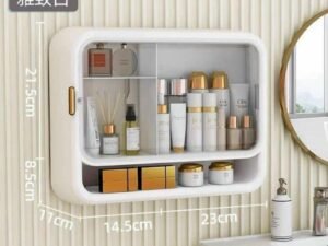 Ưu điểm của kệ : Thiết kế cửa hút nam châm chắc chắn và đảm bảo vệ sinh, tránh bụi nước dính vào các sản phẩm bên trong. Đồng thời có ngăn phụ để đựng các phụ kiện tiện lợi như hoa tai, lắc tay, vòng cổ,.. Trọng lượng kệ nhẹ nhàng, thiết kế nhỏ gọn, khả năng chống nước 3 chiều Tiết kiệm được không gian để đồ hiệu quả đồng thời thuận tiện trong việc phân loại các loại mỹ phẩm. Nhanh tay đổi ngay kệ mới nha