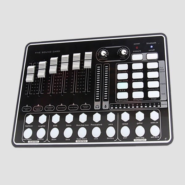 Sound card livestream H9 một ngoại hình khá bắt mắt với các phím chức năng được bố trí đầy đủ và rất khoa học. Bên cạnh đó, các phím chức năng còn được bố trí thêm các đèn Led đa sắc, tạo hiệu ứng rất hấp dẫn khi sử dụng.
