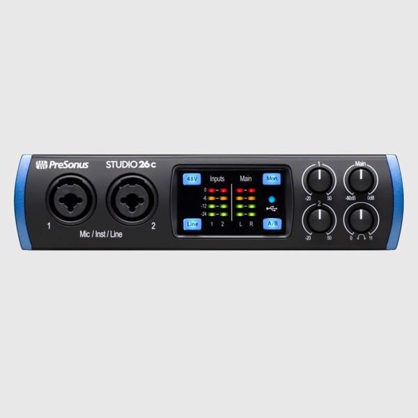 Presonus Studio 26C phù hợp với các producer chuyên làm nhạc, ca sĩ, nhạc sĩ cho đến người làm podcast trong phòng thu. Với chất âm hoàn hảo cùng độ phân giải cao lên tới 24 bit/192kHz, sound card sẽ đem đến cho người dùng những trải nghiệm âm thanh tốt nhất. Ngoài ra, Studio 26C được hoạt động bằng nguồn bus có USB, chính vì vậy người dùng có thể dễ dàng kết nối với các thiết bị khác như máy tính, laptop.